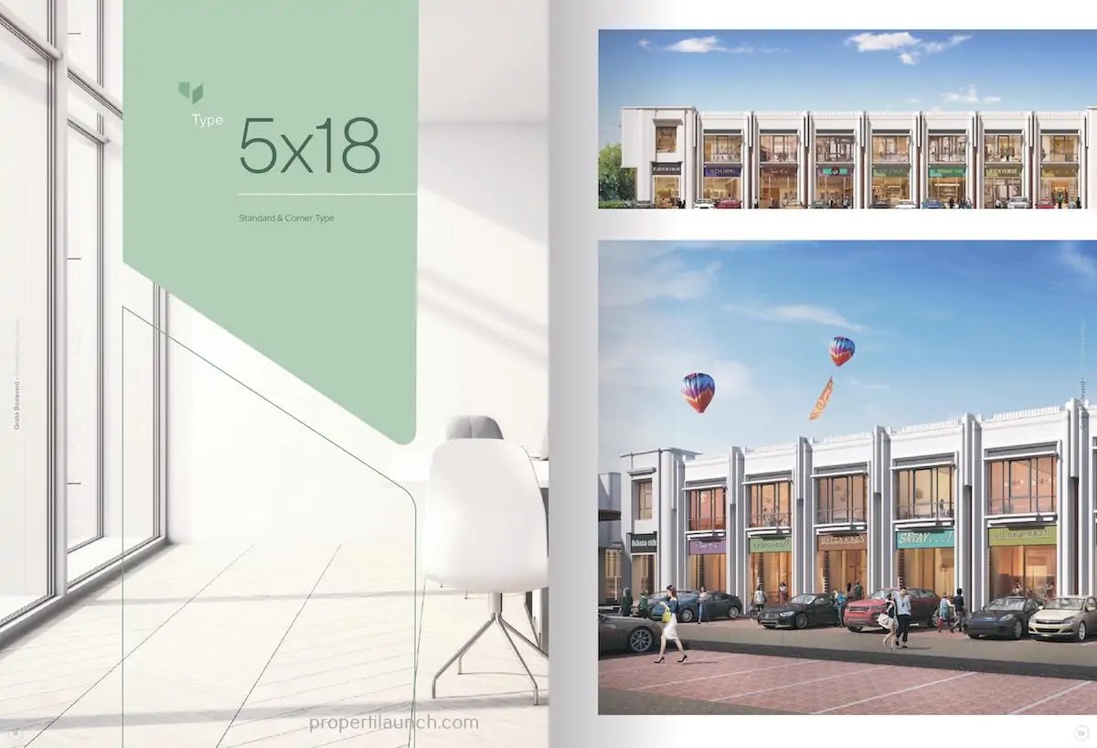 Tipe ruko Graha Boulevard 5x18 Double Face dijual perdana mulai dengan harga Rp. 2,6 milyaran* dengan 2 fasad depan dan belakang. Cocok untuk bisnis yang membutuhkan ruang yang lebih luas seperti cafe, restoran, atau toko retail.